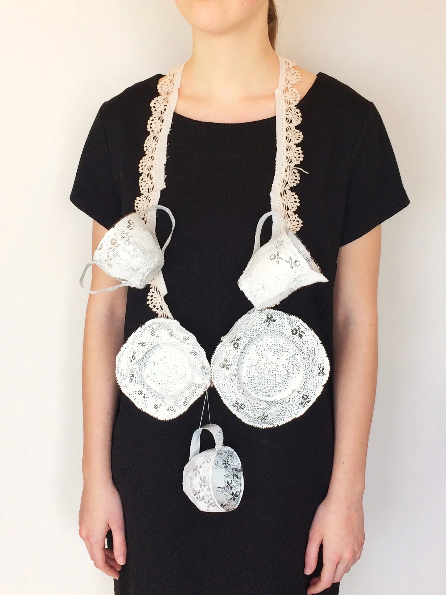 Tea for One was a set of vessels completed when the pandemic presence was first being felt in Australia and I was feeling anxious about the immediate future. Now, as I settle into our new COVID-normal and consider the changes that have occurred, both those knowingly implemented and others that have covertly entered our way of life, I find myself enjoying staying in my familiar home spaces, being ‘laid in the cradle of the house’ (Bachelard et al. 2014). The notion of being part of the house, and the house being part of me is discussed in the re-working of Tea for One to Where Dwells My Heart. What was a metaphor for home, security and isolation becomes a wearable piece, with the duel aspect of the body cherishing the home, and the home covering and protecting the body.